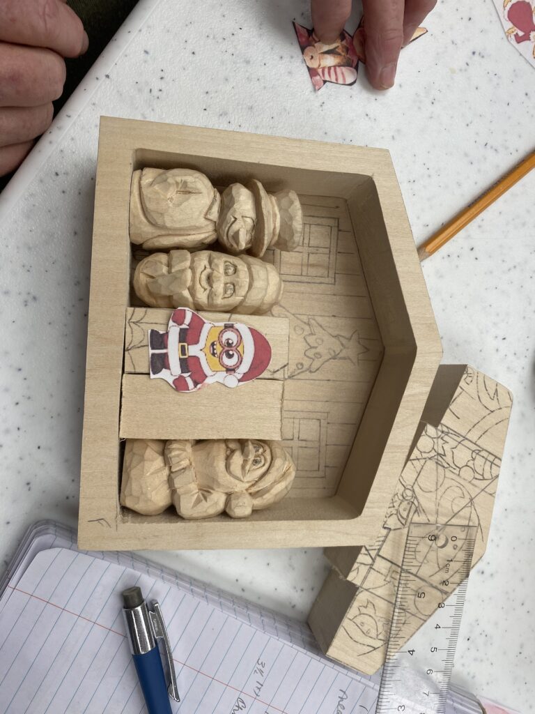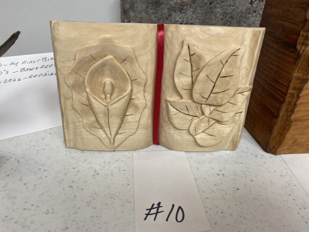 I love the unusual, the whimsical. We are always learning, constantly growing in all aspects of our lives and as a book lover I thought it would be fun to carve a different kind of fun book. So I had the idea and got started I think about 2 years ago. I got my wood, mapped out my idea then it was put on the back shelf. I cannot honestly tell you why I stopped working on it for so long. I am, however, very glad this contest encouraged me to get it out and finish it and although I found it challenging, I had a lot of fun working on it. I really didn’t expect to win, not with all the wonderful and talented carvers we have in our group so with that said I am very grateful for everyone who voted for my little fun book. Thank you and thank you Jerry for this great idea. What’s next?