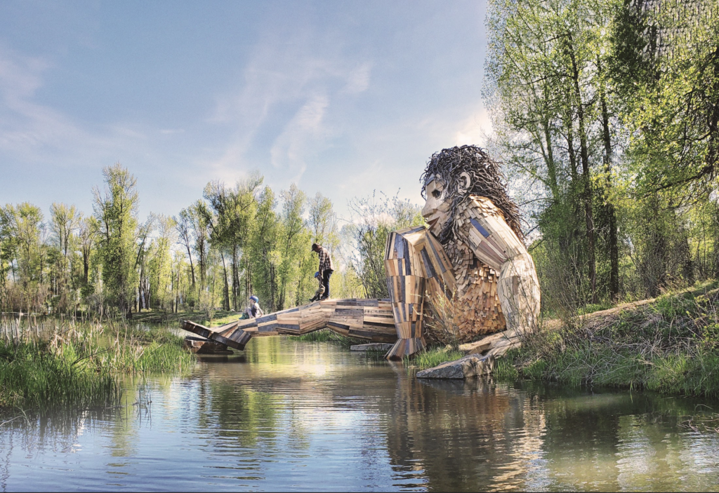 Thomas Dambo’s creative vision is to transform trash into art, blending it with a sense of adventure through the exploration required to find his works, most of which are hidden in natural landscapes. He collaborates closely with local communities, involving them in various stages of his projects, from collecting discarded materials, helping build the sculptures, to maintaining the finished sculptures.