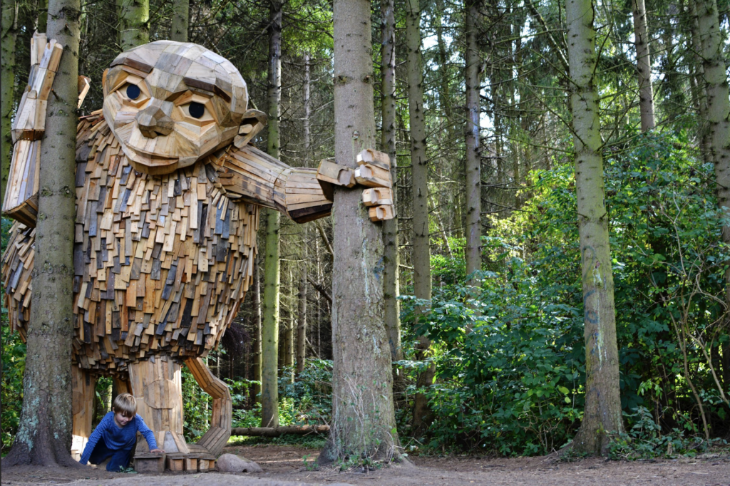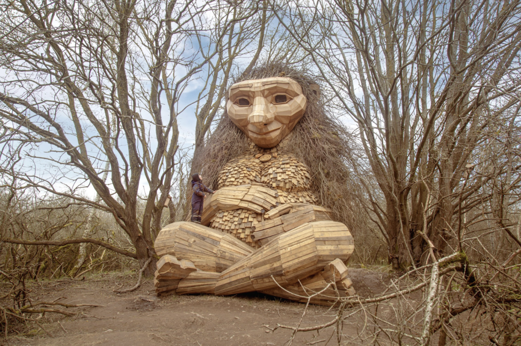 Thomas Dambo hails from Odense, Denmark. Often called the world’s leading recycling artist having he has produced large scale sculptures made entirely from discarded materials. His giant trolls are among his most famous works. In fact More than 170 of them have been built from the Atlantic to the Indian Ocean, from forests to deserts.
