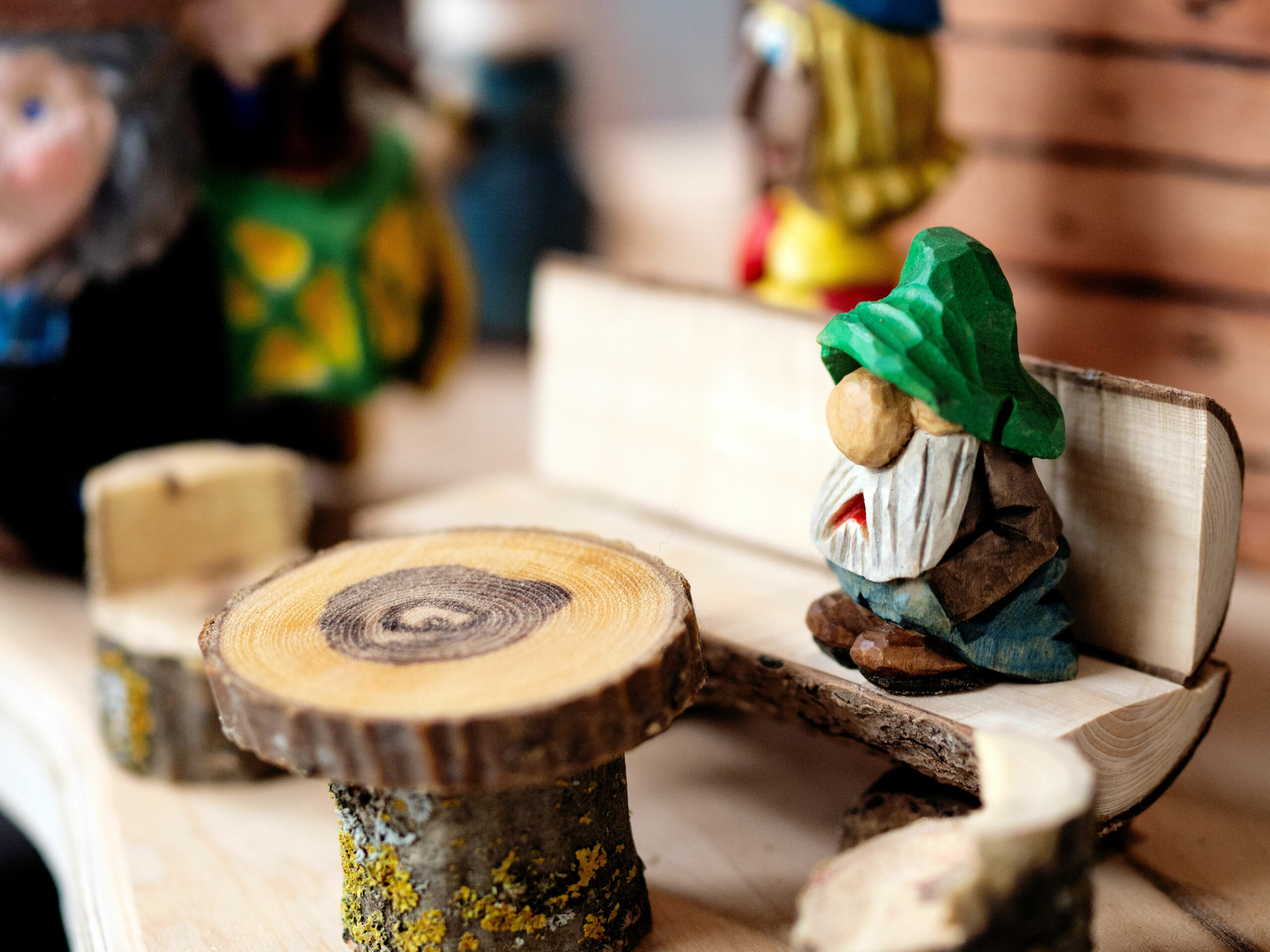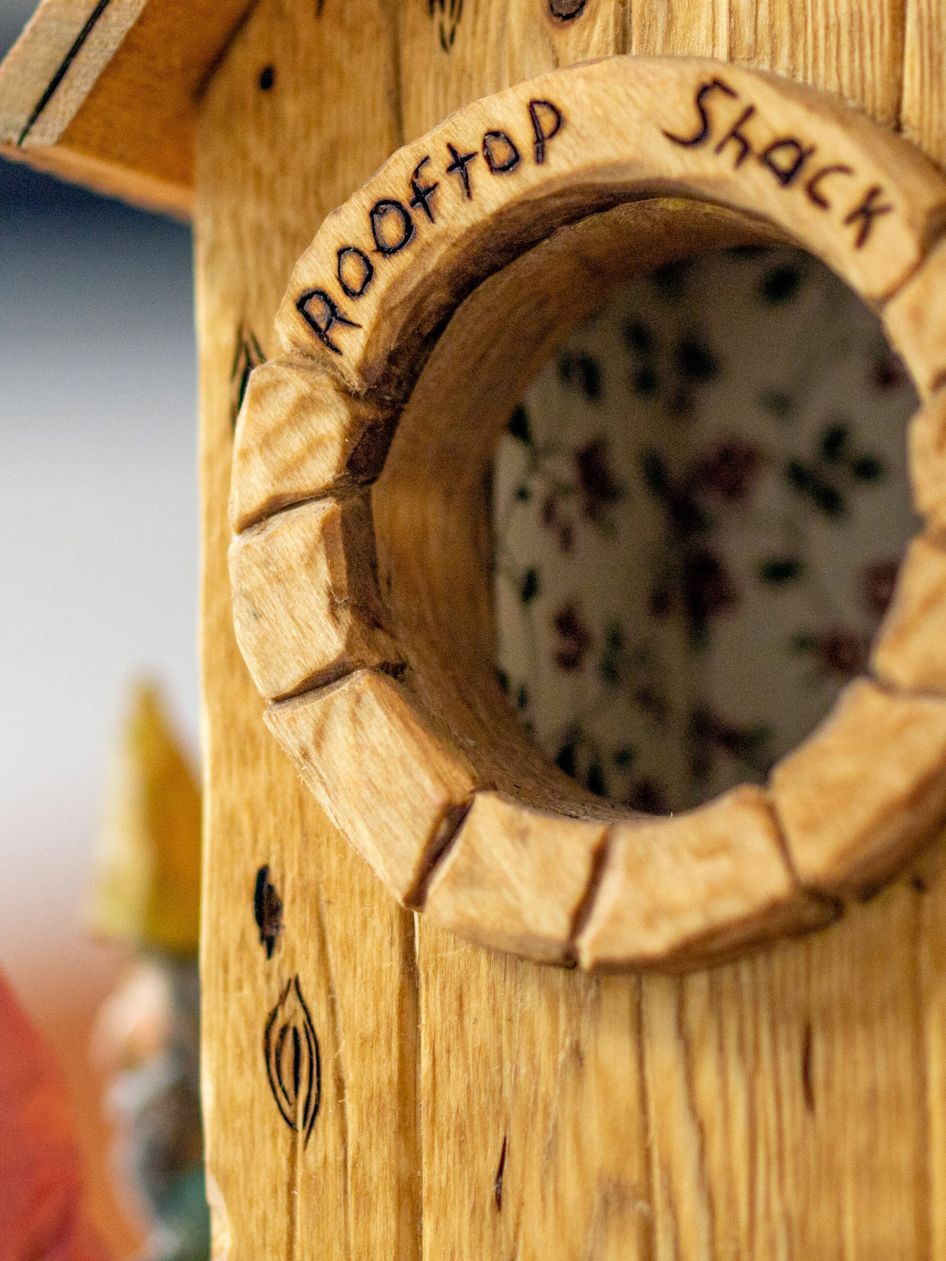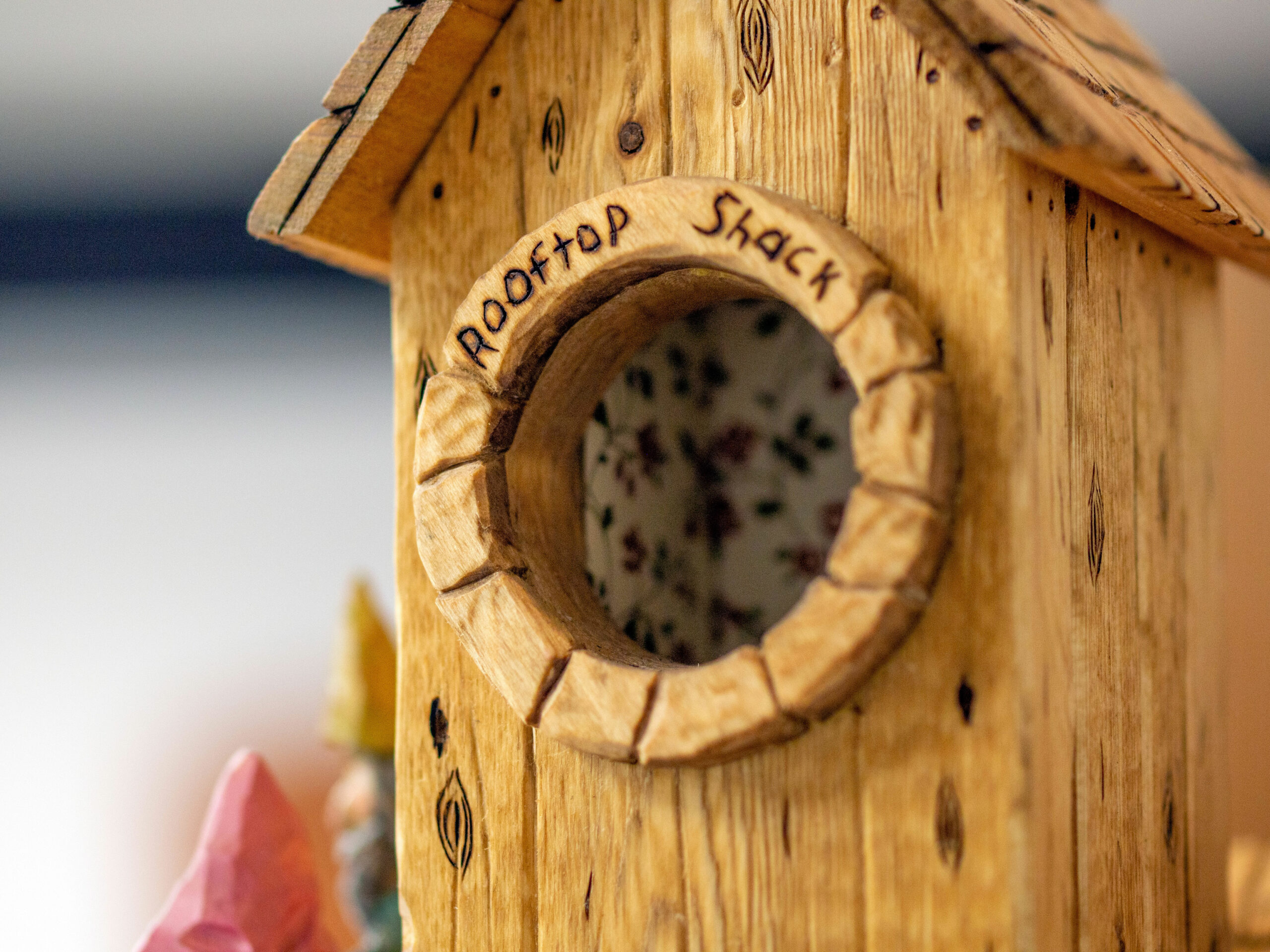 Growing out of an in house challenge by one member to the rest of the club, to match his carving of a gnome, we have created an entire village. The concept of this village is a community of gnomes overtaking and occupying a birdhouse condominium project and making it their own.